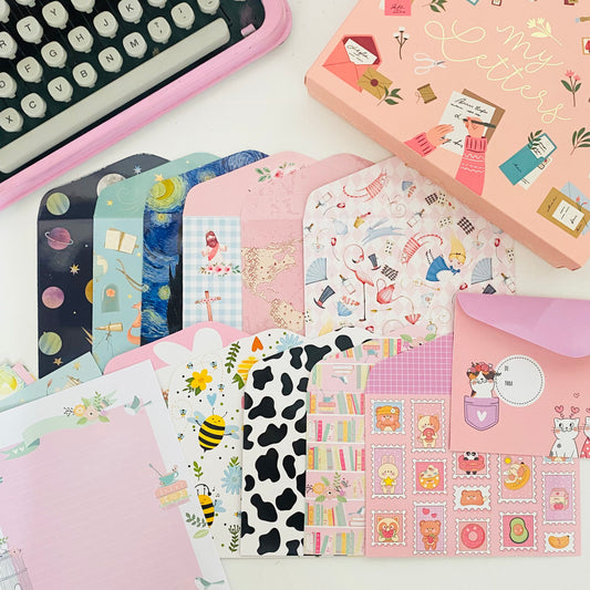 Caixa com Papéis de Carta Decorados e Envelopes Colecionável