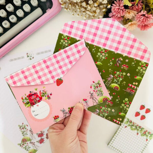 Kit Papéis de Carta com Envelopes Fazenda de Morangos