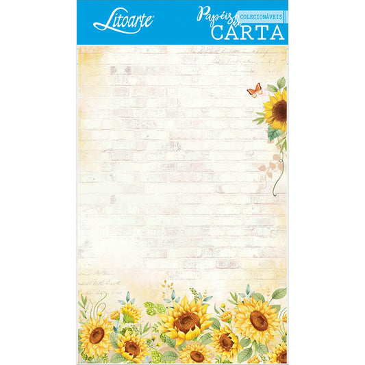 Papel de Carta Flores do Campo Verde - 5 unidades