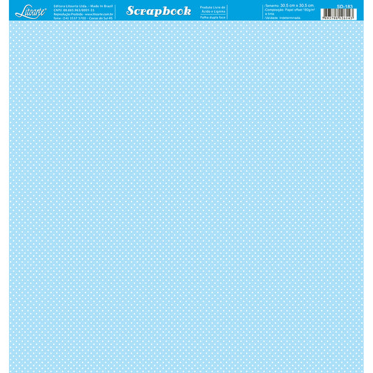 Papel Scrapbook Poá Azul Litoarte 30,5x30,5 Dupla Face