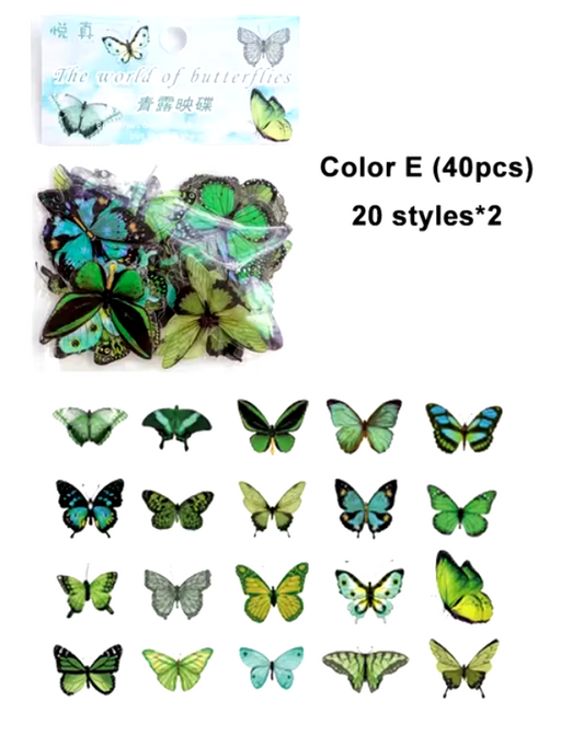 Adesivos Borboletas Vintage Azul ou Colorido - 40 unidades