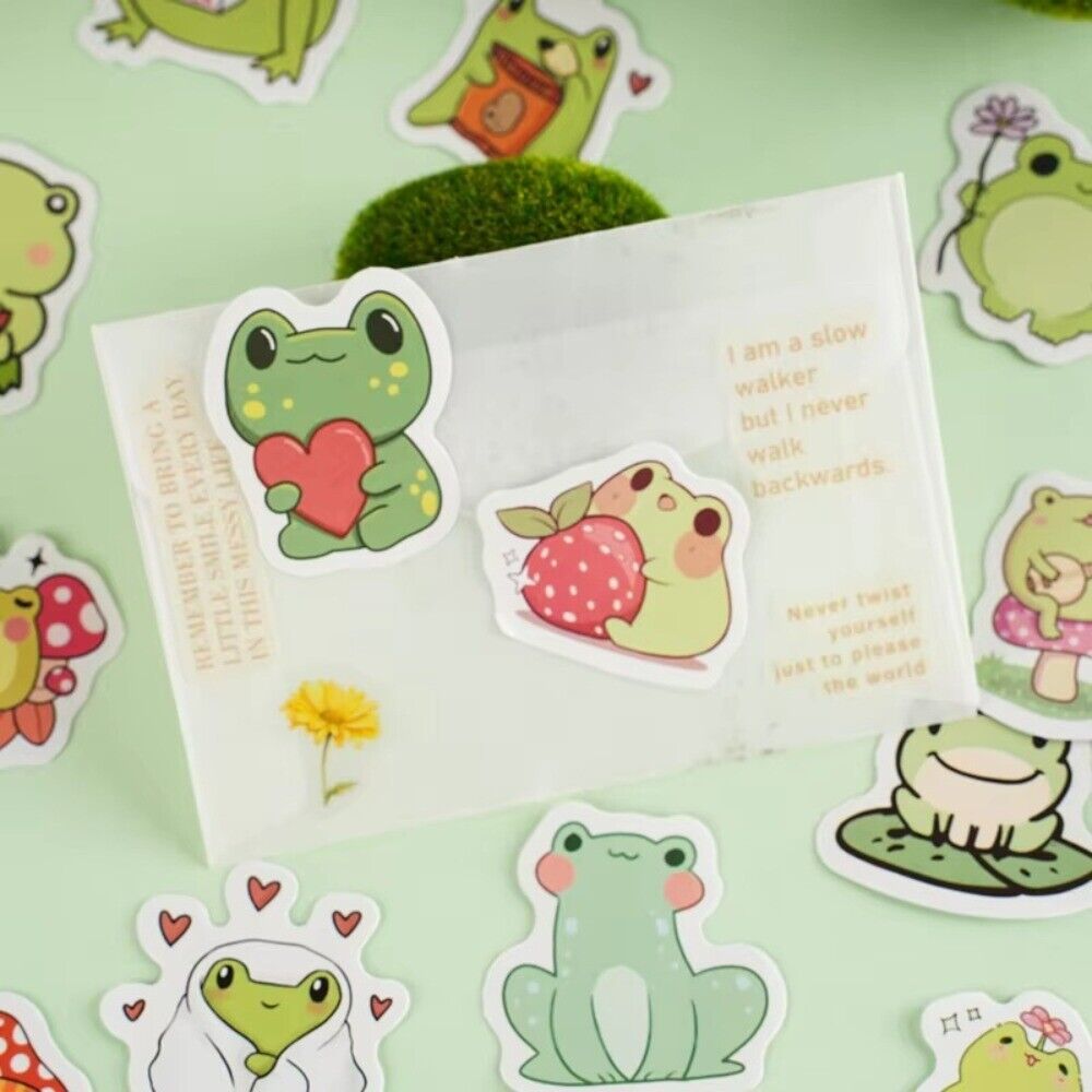 🐸💚 Adesivo na Caixinha - Sapinhos divertidos (44 adesivos decorativos) ✨
