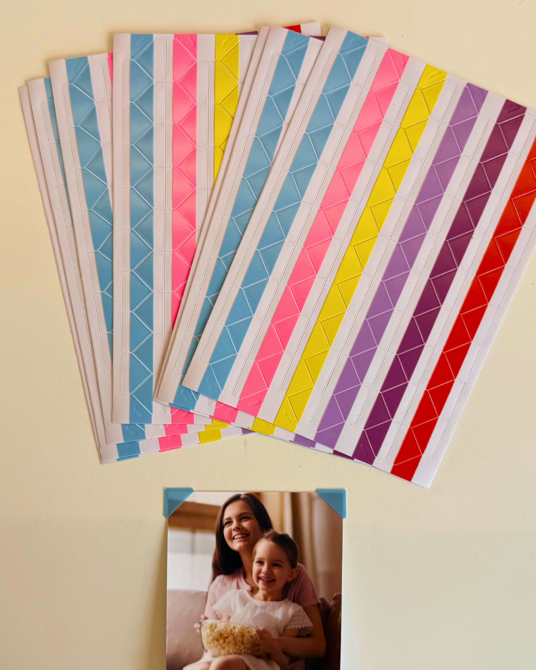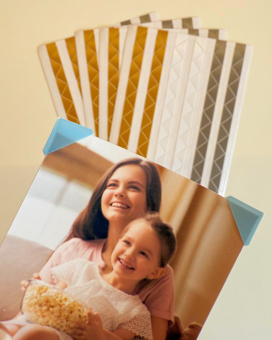 📸 Fácil aplicação: basta destacar e colar nos cantos das fotos, sem precisar de cola ou fita dupla face.